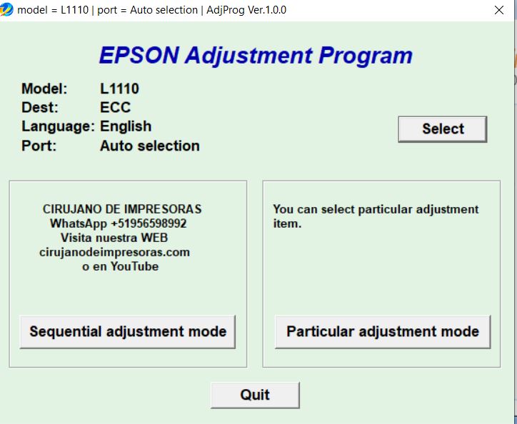 RESET EPSON L1110
